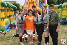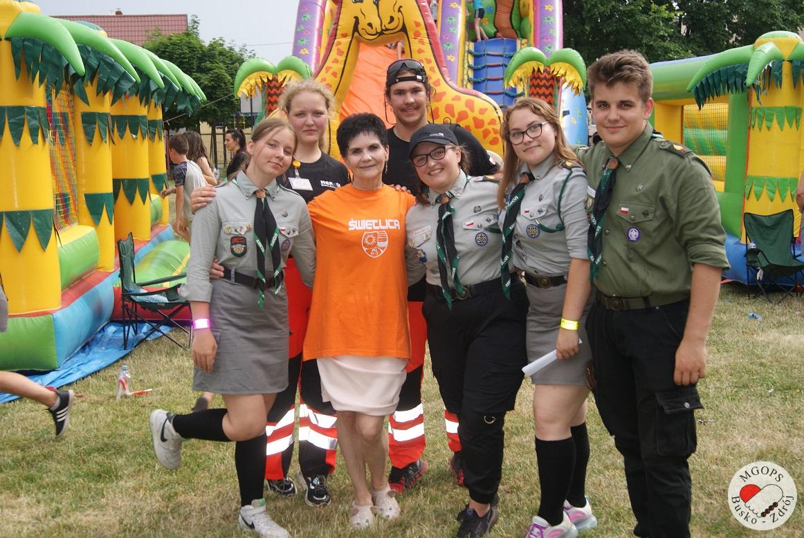 Zaproszeni goście w osobach Wiceburmistrz Pan Michał Maroński, Komendant Hufca ZHP Busko-Zdrój hm Adam Gadawski oraz Dyrektor Miejsko-Gminnego Ośrodka Pomocy Społecznej Pani Anna Kania dokonali uroczystego otwarcia festynu obdarowując dzieci słodyczami życząc cudownej zabawy oraz bezpiecznych I wspaniałych przygód wakacyjnych.